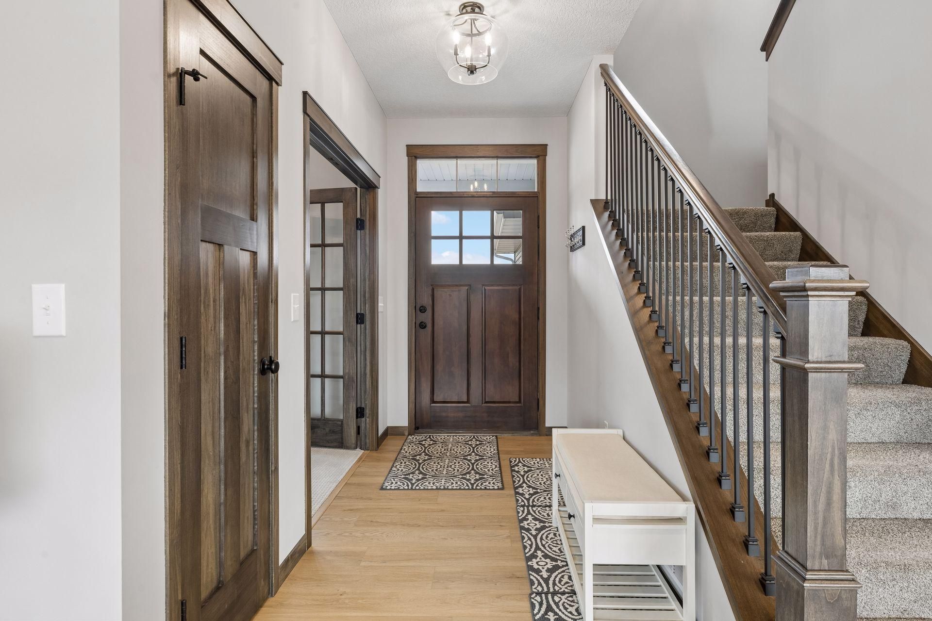 A stunning residence on one of the neighborhood's most choice walkout pond settings. Here are extensive upgrades in cabinetry, wood trim ( inside and out) and complete with landscaping, irrigation and masonry covered front porch. Note the heated garage, premium deck, paver patio and upgraded fixtures and completed, quality window treatments. The walkout is significantly finished and useable for recreation and play space now ( completion for a fraction of cost per foot) and listed herein are after purchase add ons, all deeply discounted from actual costs. The seller was ' surprised by that once a generation dream home and had the opportunity...read more