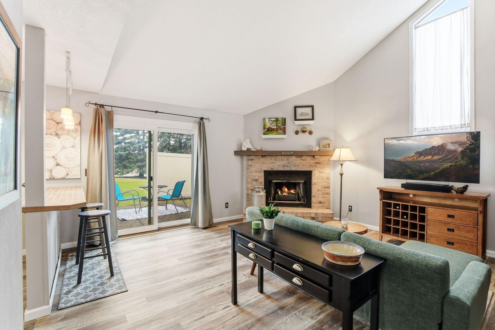 Convenient and well-maintained two-level end-unit townhome offering an airy, open feel with vaulted ceilings and abundant natural light. Features include a spacious living room with fireplace, loft-style bedrooms, and a large primary suite with private deck access and walkthrough bath. Enjoy easy indoor-outdoor living with a walkout from the main-level living room to a private patio overlooking expansive green space?ideal for relaxing, gardening, entertaining, or pets. Recent updates include a stackable washer and dryer (2025), electric stove (Oct 2022), lower-level flooring (Feb 2021), and new furnace and A/C (May 2023). Located near walking...read more
